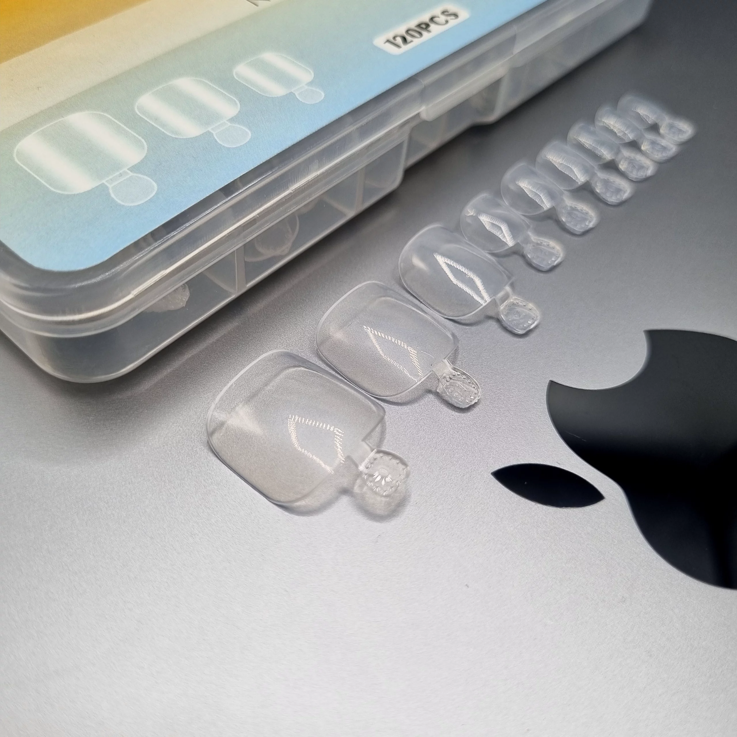 که بهصورت کامل روی ناخن پا فیت میشود و بدون نیاز به سوهانکشی سنگین، فرم نهایی را ایجاد میکند.