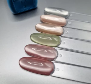 رنگ 1: نقرهای درخشان با افکت آیس سرامیکی؛ ایدهآل برای طراحیهای مینیمال، فرنچ مدرن و ترکیب با رنگهای تیره.