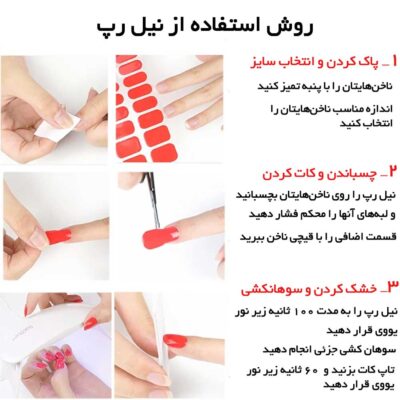 تنوع بالا در طرحها: نیل رپ ساده، نیل رپ جدید، نیل رپ ژلهای بیرنگ ناخن، نیل رپ روسی و …
